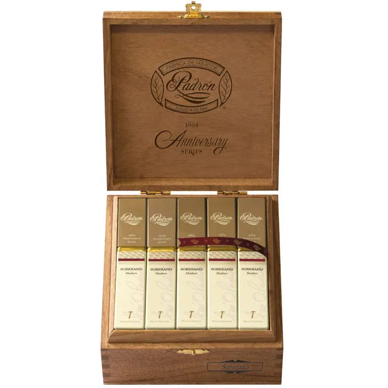 Experience the legendary Padrón 1964 Anniversary Series in the majestic Soberano vitola with a rich Maduro wrapper. This ultra-premium cigar commemorates the year José Orlando Padrón left Cuba to begin his cigar-making journey. The 1964 Anniversary Series has earned countless 90+ ratings and represents Padrón's commitment to excellence, featuring exclusively aged Nicaraguan tobaccos for unparalleled complexity and smoothness.
